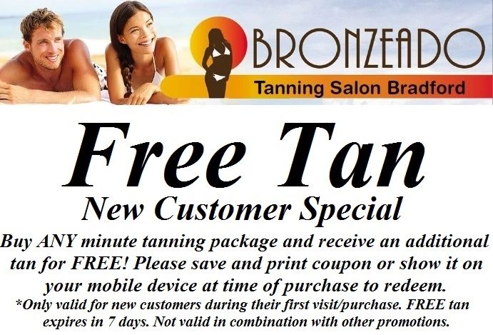 *Only valid for new customers during their FIRST visit/purchase. FREE tan expires in 7 days. Not valid in combination with other promotions.